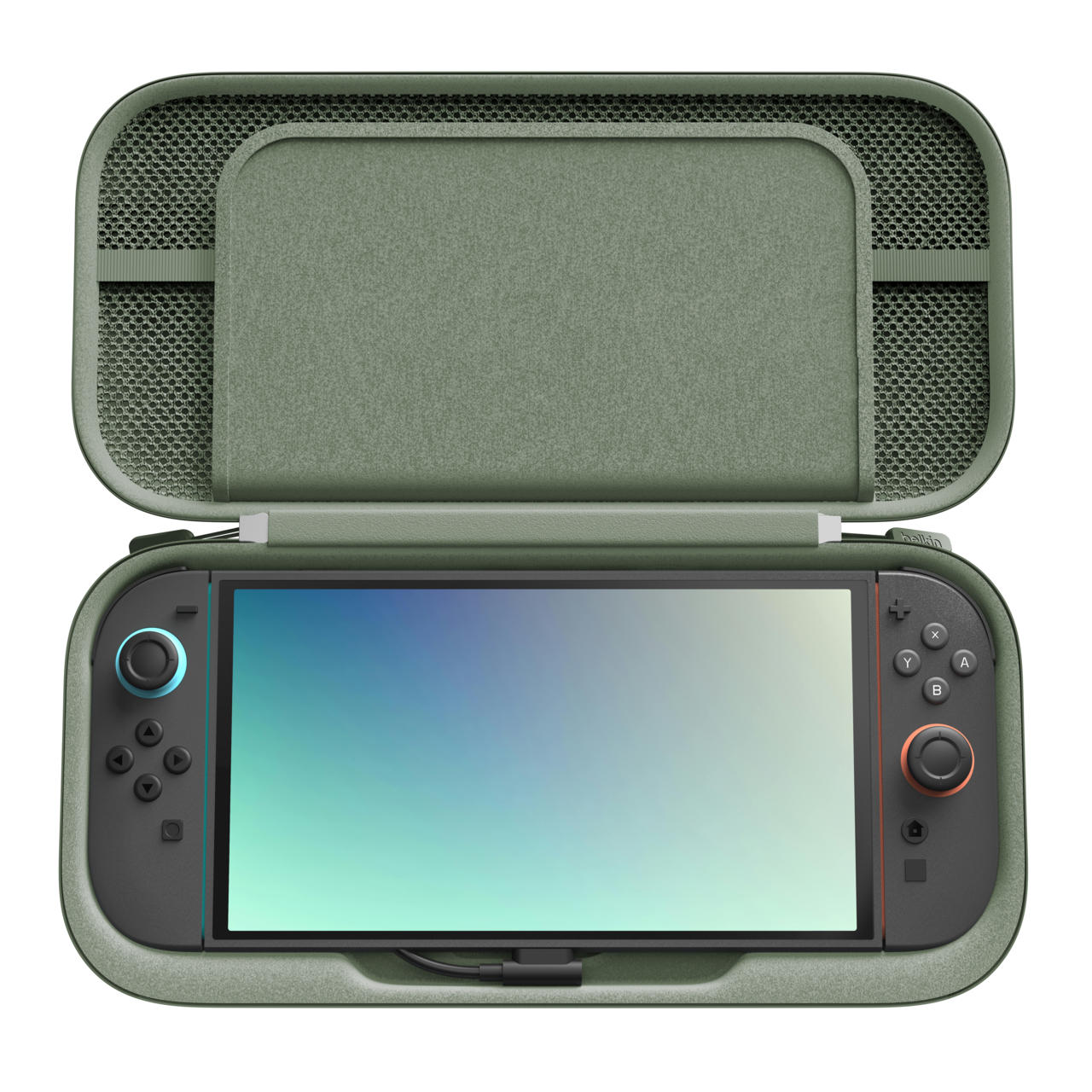 Мобільне живлення без компромісів. Усередині – потужний акумулятор 10 000 мА·год із дисплеєм, який дає змогу відновлювати заряд Nintendo Switch 2 до 1,5 раза швидше. Забезпечено живлення 20 Вт через розніми USB-C та USB-A. Завдяки технології Belkin SmartProtect заряджання безпечне та стабільне, навіть коли гра триває. Спеціальна канавка для підставки дає змогу встановити консоль безпосередньо в кейсі, щоби грати й одночасно заряджати.
