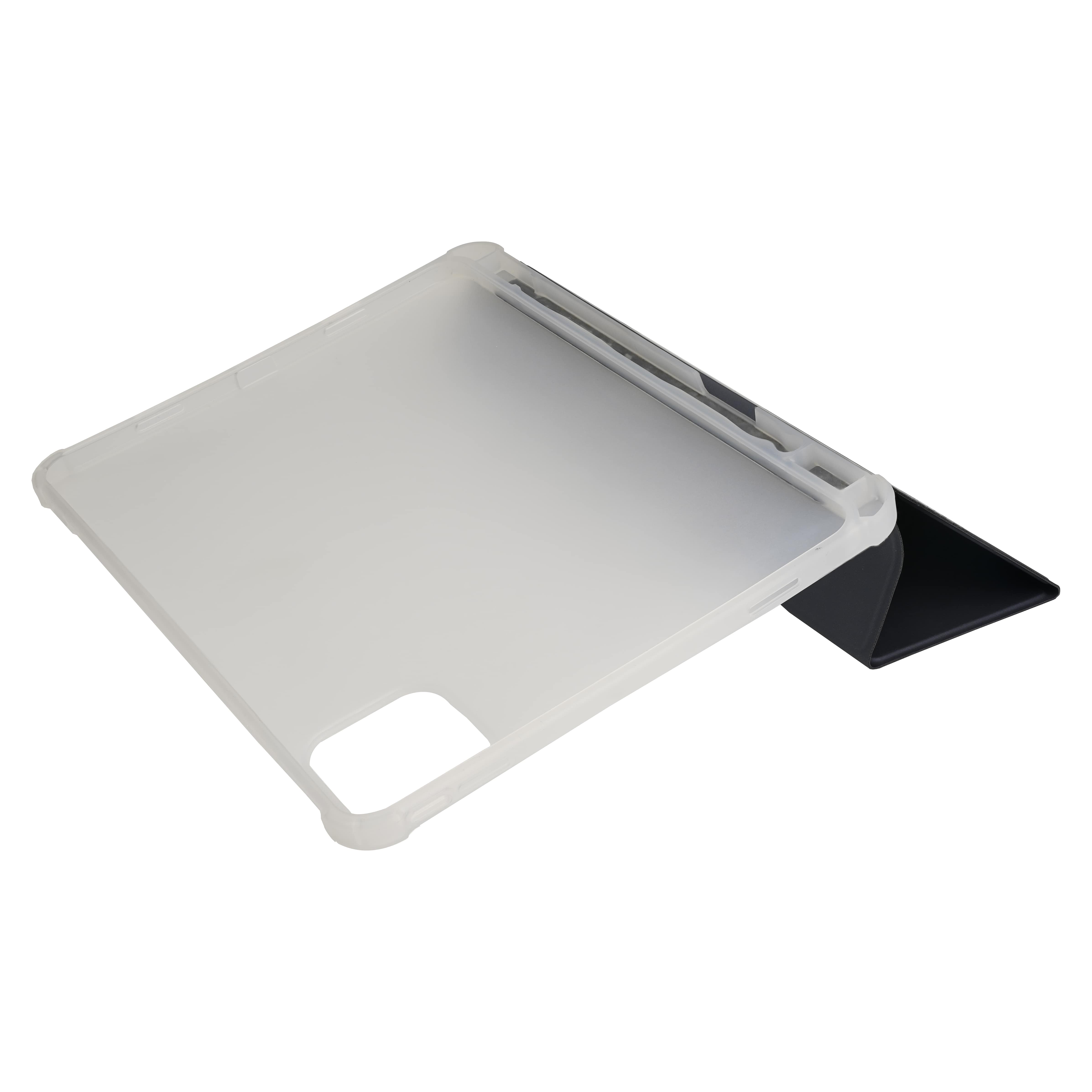 Преміальні матеріали: зовнішня кришка з приємної на дотик PU-шкіри темно-сірого кольору, внутрішній бампер з гнучкого та міцного прозорого TPU, що надійно фіксує пристрій і захищає від подряпин та легких ударів. Передня кришка легко перетворюється на стійку підставку з двома режимами: для комфортного набору тексту та перегляду контенту.