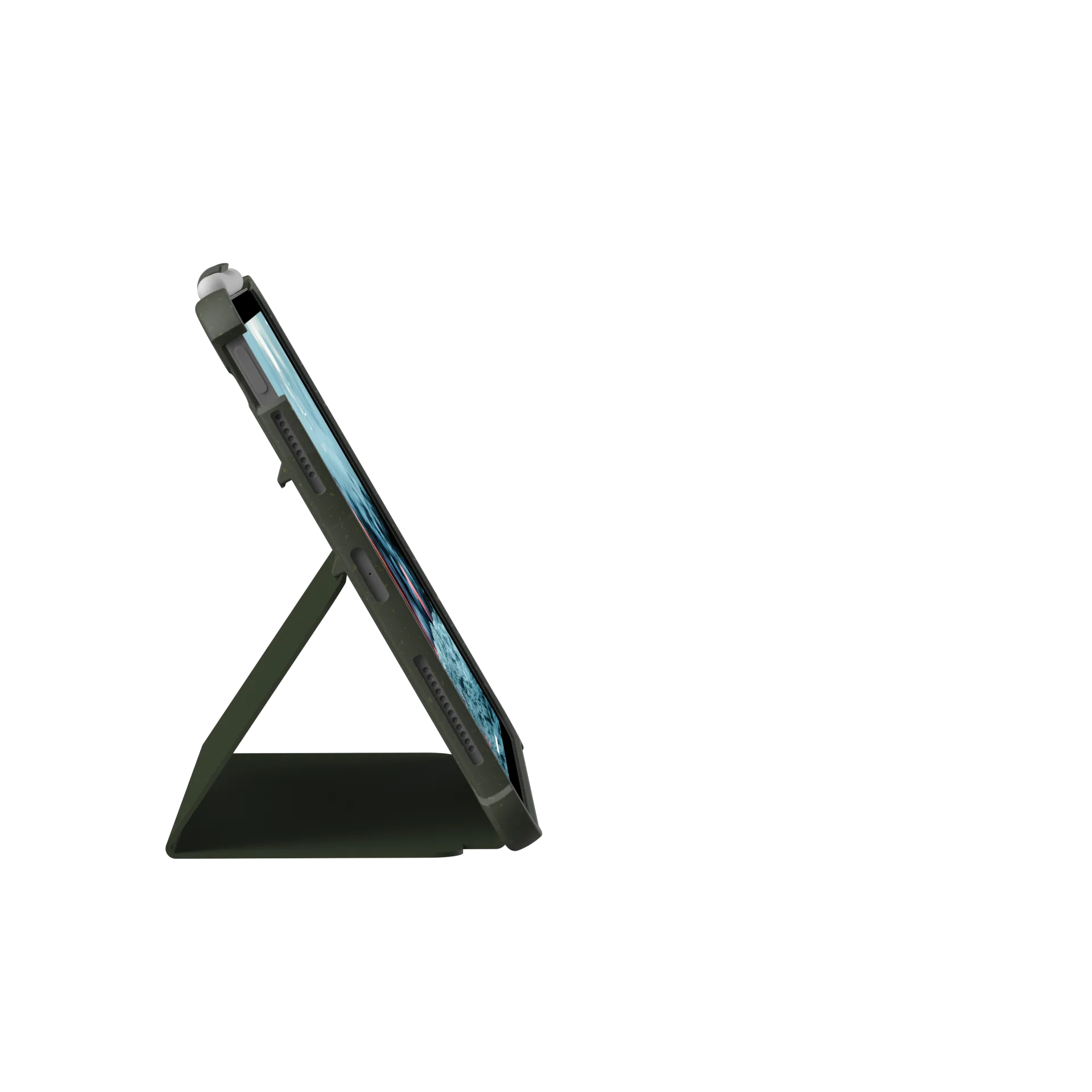 • Зубчасті точки для перегляду підставки. Вбудований тримач Apple Pencil.