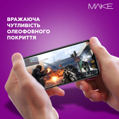 Захисне скло Make виготовляється з японського алюмосилікатного скла Asahi Glass, що містить оксид алюмінію Al2O3.