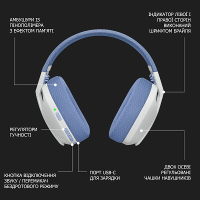 Logitech G435 — накладна гарнітура для комфортної гри. Об'ємний звук, мікрофони з шумозаглушенням і яскравий дизайн: ця гарнітура не тільки забезпечує кристально чисте звучання і неперевершену якість гри, а й слугує дуже стильним аксесуаром.