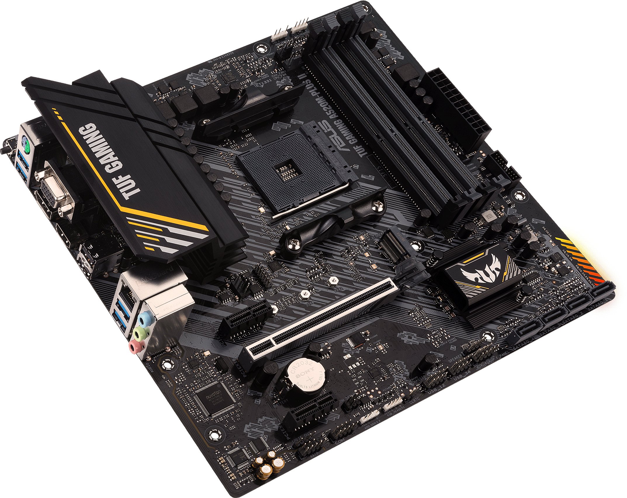 Материнська плата TUF GAMING A520M-Plus II є відмінною основою для складання високопродуктивного геймерського ПК, яку доповнюють функції для підвищення ігрового комфорту: високошвидкісний мережевий контролер, який мінімізує затримки в онлайн-іграх і вбудоване RGB-підсвічування, яке може бути синхронізовано із сумісними аксесуарами.
