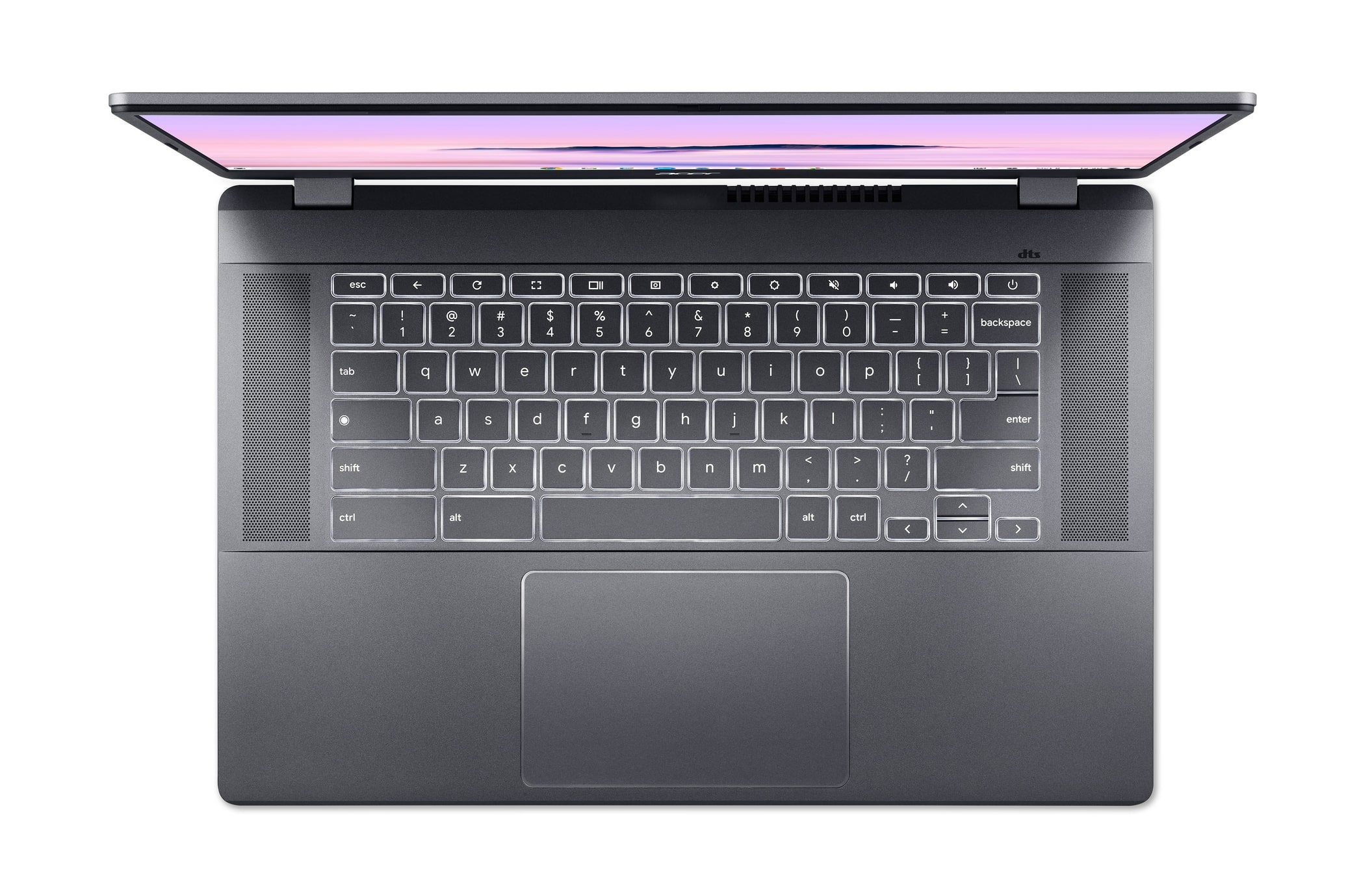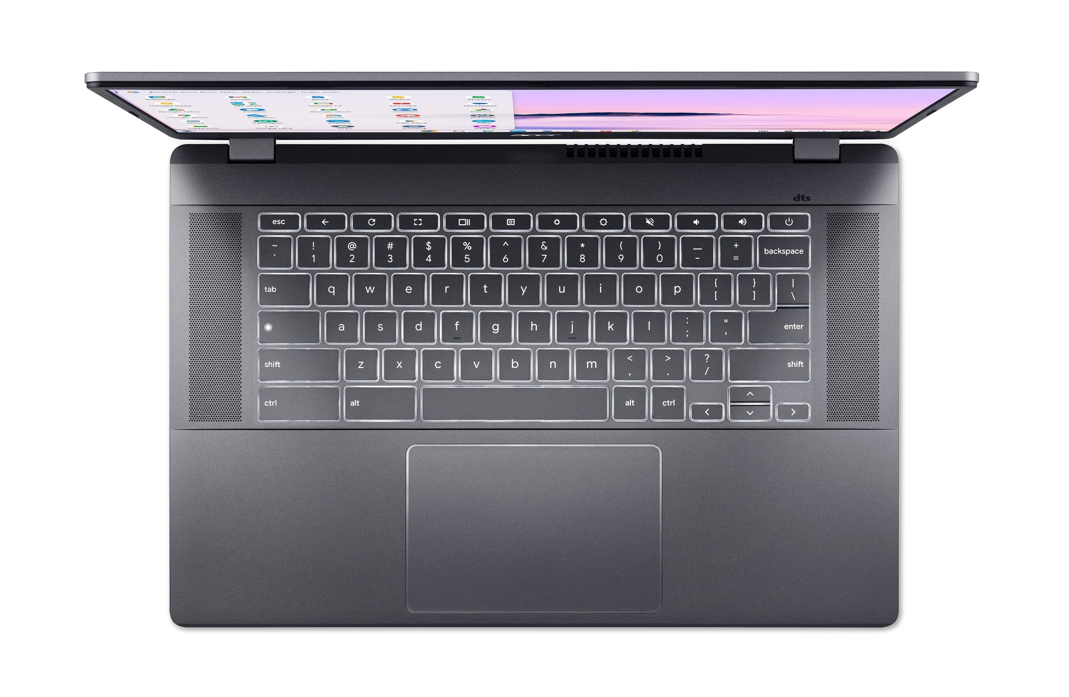 Екран з діагоналлю 15 дюймів, потужна аудіосистема від компанії DTS і акумулятор, який швидко заряджається та забезпечує автономну роботу протягом 10 годин - все це робить ноутбук Chromebook Plus ідеальним компаньйоном для людей, що люблять розважатися поза домом. Користувачі зможуть взяти його із собою будь-куди без блока живлення та спокійно насолоджуватися неперевершеною якістю звуку, яку забезпечують два спрямованих угору динаміки.