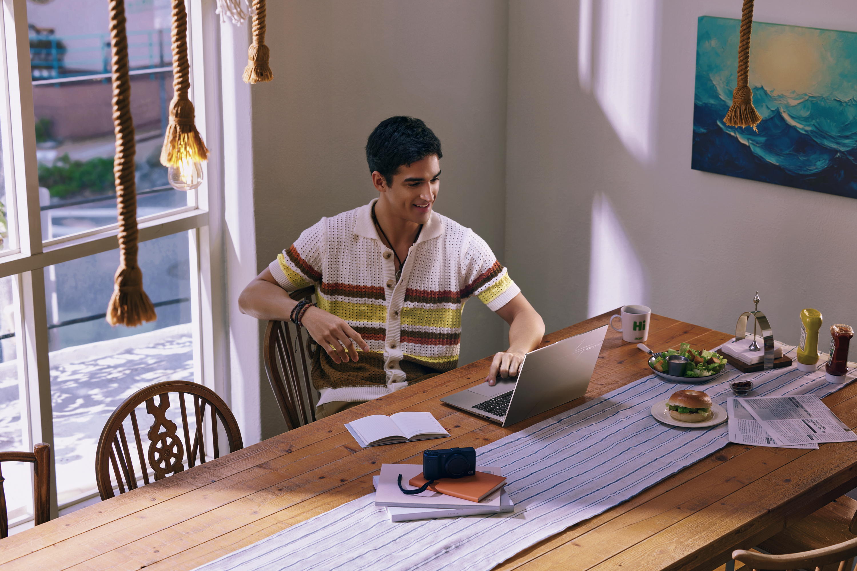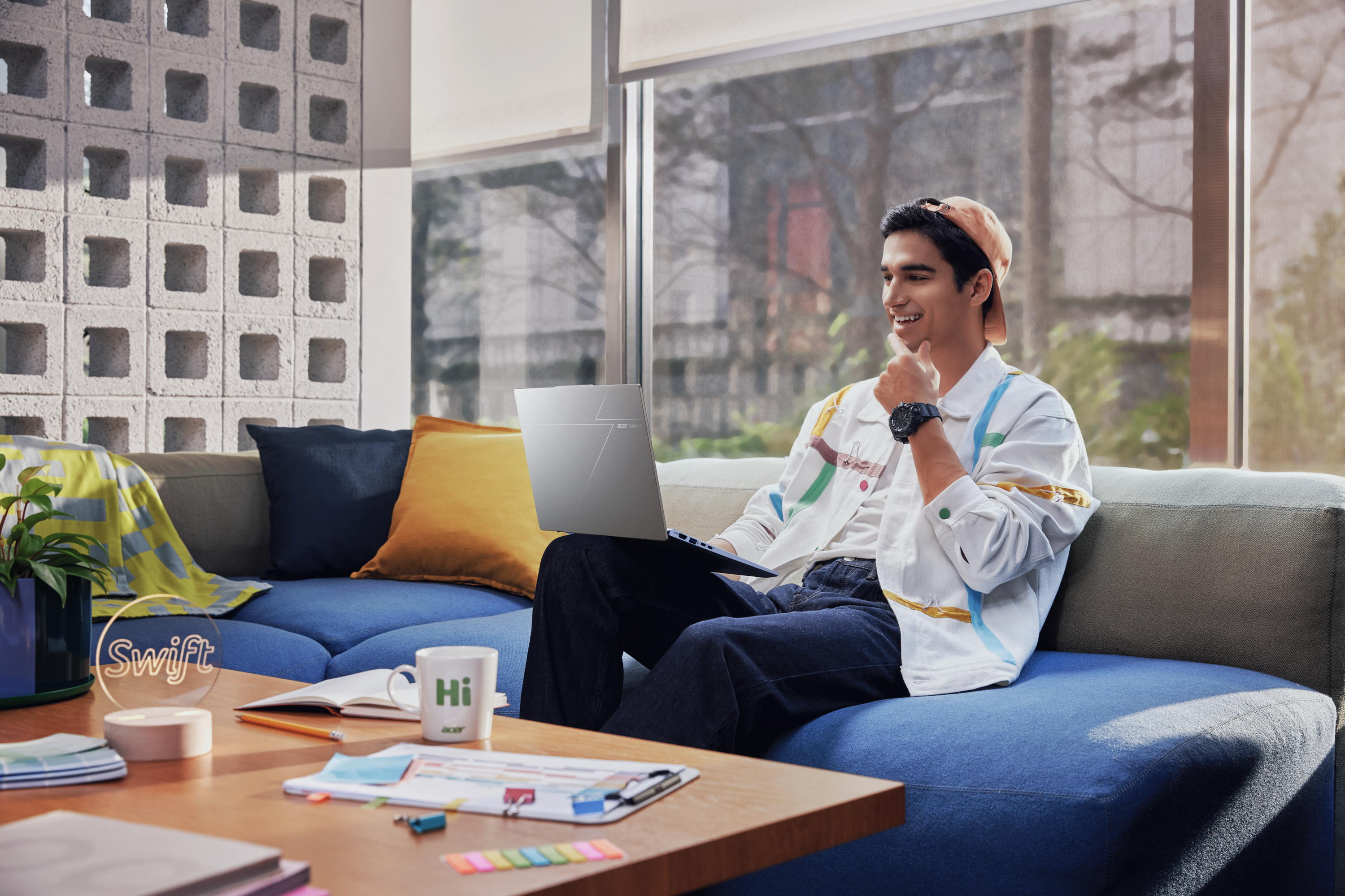 Легкий, тонкий і мобільний Swift Go 14 має обтічну, вигравірувану лазером кришку, що відкривається на 180° і вишукано виглядає будь-де. Сенсорна панель з кількома елементами керування легко працює з мультимедійними файлами та відеодзвінками.