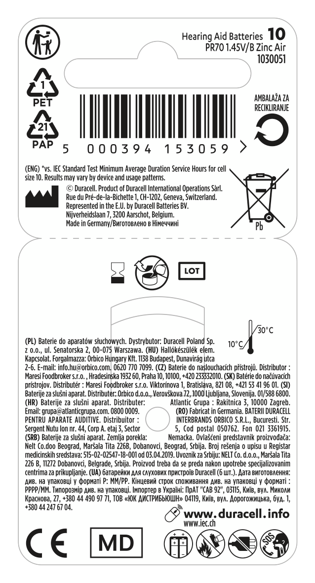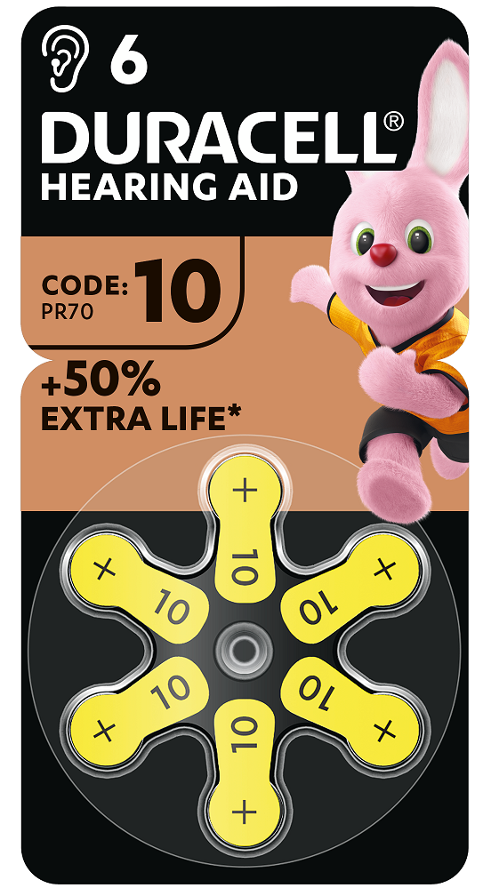 <p>Почуйте все завдяки тривалому терміну служби спеціальних батарейок для слухових апаратів Duracell Hearing Aid розміру 10 з EasyTab®.</p>