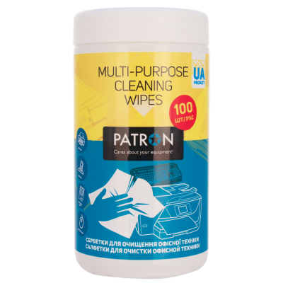 PATRON F3-028 - це високоякісні вологі серветки від виробника Patron для очищення комп'ютерів, телефонів, клавіатур, мишок, іншого офісного обладнання, пластикових і металевих поверхонь.